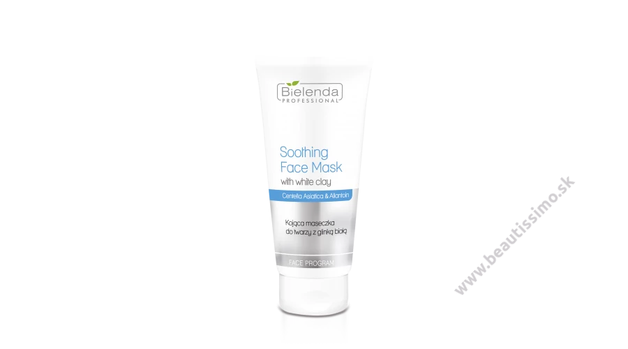 BIELENDA PROFESSIONAL - UPOKOJUJÚCA PLEŤOVÁ MASKA S BIELYM ÍLOM je určená pre citlivú, suchú a kapilárnu pokožku. Obsahuje extrakt z gaštana, alantoin a biely íl. Má utišujúci a upokojujúci účinok na vaskulárnu pleť, redukuje začervenanie podráždenej pokožky, optimálne hydratuje a okysličuje, detoxikuje pokožku. Má relaxačný účinok.