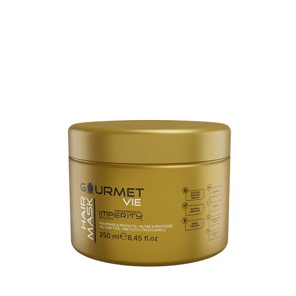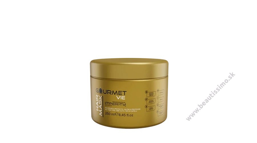 Gourmet maska na vlasy bez parabénov s vôňou parfumu La Vie Est Belle 250 ml je vhodná pre všetky typy vlasov. Obsahuje hodvábny proteín a bambucké maslo, ktoré zlepšujú pružnosť a hydratáciu vlasov. Keratín, arganový olej a olej z palmových jadier dodávajú vlasom hodvábny lesk, objem, zdravý vzhľad a nádhernú parfumovanú vôňu.