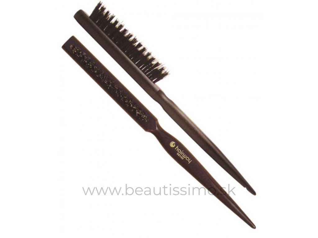Drevená tupírovací kefa Hairway s pravými štetinami z divokého prasaťa. Zaručuje ľahké tupírovanie a bohatý objem. Kefa je šetrná k vlasom, môžete s ní vytvoriť dokonalý styling bez poškodenia vlasov. Odlišná dĺžka štetín podporuje extra dlhé držanie účesu bez použitia laku na vlasy. Ideálne pri česaní akéhokoľvek účesu a dokonalé uhladenie vlasu.Vlastnosti: