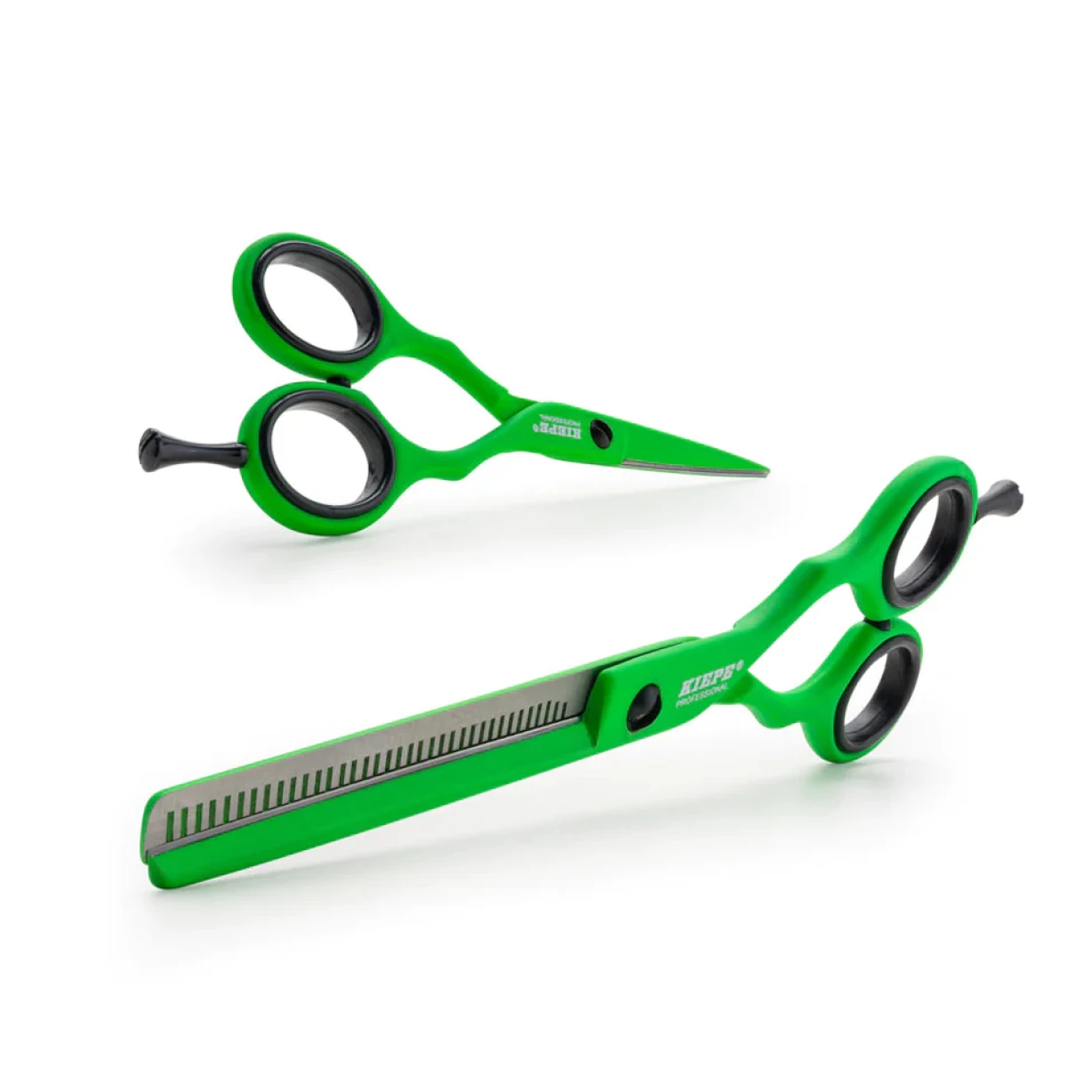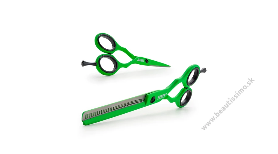 Farebná súprava profesionálnych nožníc na strihanie vlasov: nožnice na strihanie vlasov + efilačné nožnice.