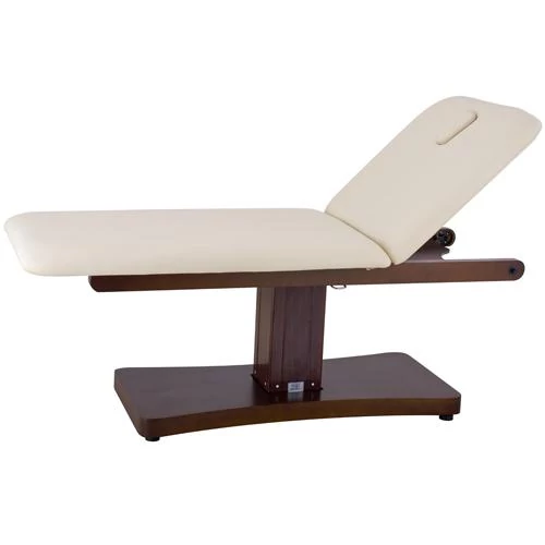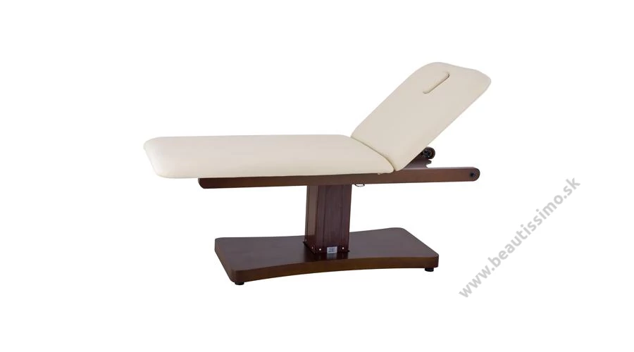 Drevená masážna posteľ, elektrický nastaviteľná. Biela koženka. Má stabilnú a silnú konštrukciu, vďaka čomu je ideálne na kozmetické a wellness ošetrenia, špecialne na masáže. V lehátku je umiestnený otvor pre hlavu, tým je zabezpečené príjemné uloženie hlavy počas ošetrenia. Rozmery: * výška nastaviteľná 60-68cm, * šírka: 77cm, * dĺžka 192cm, * klasický design, * elektrický nastaviteľná výška, * nastaviteľná opierka hlavy a chrbáta - ručne * Ideálna aj pre Spa a Wellnes salóny.