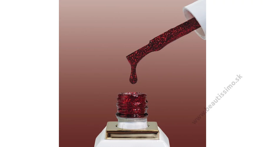 Ruby – očarujúci červený gél lak s trblietavým efektom.