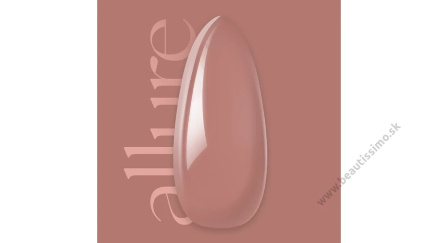 - Vybraný odtieň allure gél laku aplikujte v jednej alebo dvoch vrstvách a vytvrdzujte v UV lampe 2 minúty alebo v LED lampe 1 minútu, v závislosti od pigmentácie.