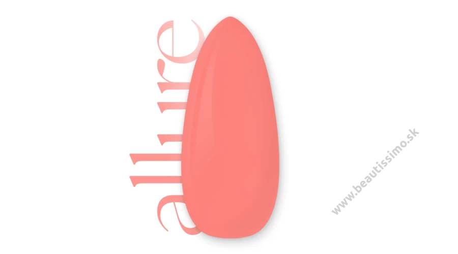 - Vybraný odtieň allure gél laku aplikujte v jednej alebo dvoch vrstvách a vytvrdzujte v UV lampe 2 minúty alebo v LED lampe 1 minútu, v závislosti od pigmentácie.