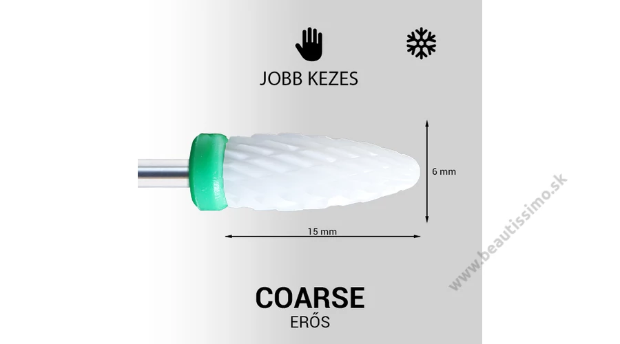 Jej zaoblený koniec zaisťuje bezpečnú prácu pri odstraňovaní a tvarovaní akrylu alebo gélu. Vďaka keramickému materiálu brúsnej hlavice nevzniká pri práci teplo a nezohrieva sa. Pri používaní keramických hlavíc pracujte so zvýšenou opatrnosťou, aby ste nepoškodili nechtovú platničku!