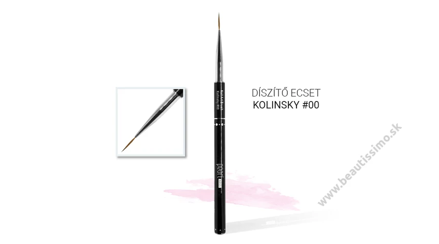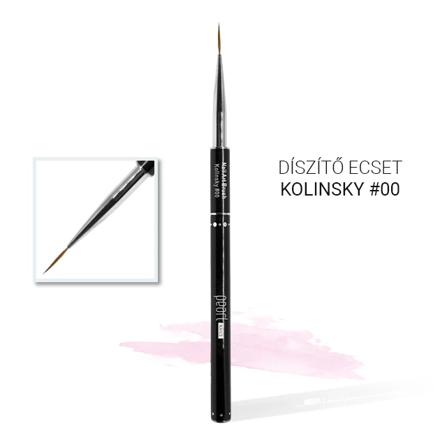 Tenký #00 zdobiaci štetec z prírodného vlasu (Kolinsky). Ideálny na maľovanie tenkých, precíznych kontúr a špirál, menších aj väčších vzorov, ako aj voľného okraja pri francúzskej manikúre. Odporúčame na gélové a akrylové maľovanie. S odnímateľnou, čiernou hliníkovou rukoväťou, ktorú môžete zároveň použiť ako ochranný kryt. Dĺžka vlasu: ~15mm.