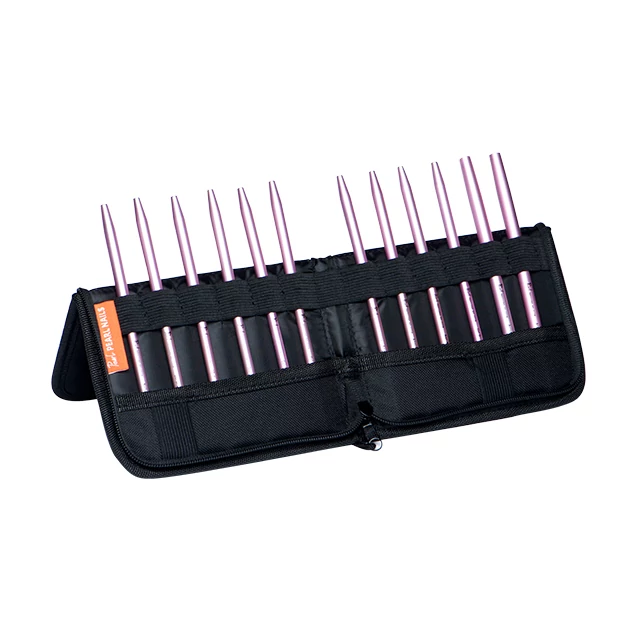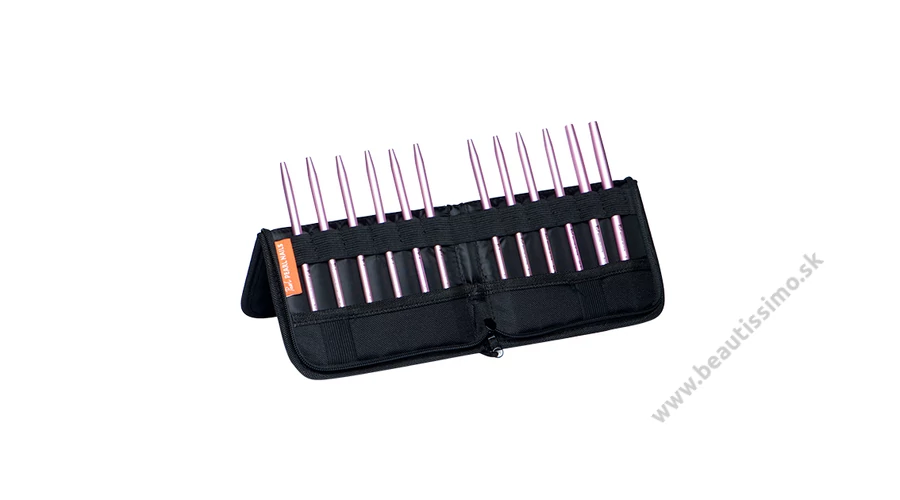 Puzdro na štetce/náradie z pevného a odolného materiálu, s pevným obalom a zapínaním na zips. Zmestí sa doň 12 štetcov + 2 menšie nástroje. Dá sa preložiť na polovicu, takže štetce sú pri práci prehľadne uložené. Je prenosný a vďaka kompaktným rozmerom sa zmestí aj do pracovnej tašky, resp. ani na stole nezaberá veľa miesta. Na prednej strane má vytlačené biele logo Pearl Nails.