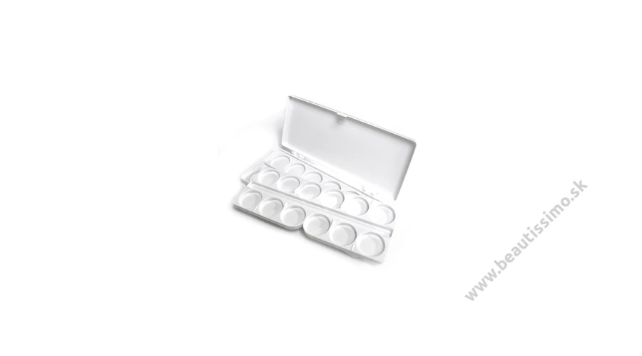 Profesionálna gélová paleta s vrchnákom na uchovávanie a miešanie farieb. Vďaka odnímateľnej vnútornej časti sa dá použiť na 24 ks rôznych odtieňov gélu, farebného gélu alebo gél laku.