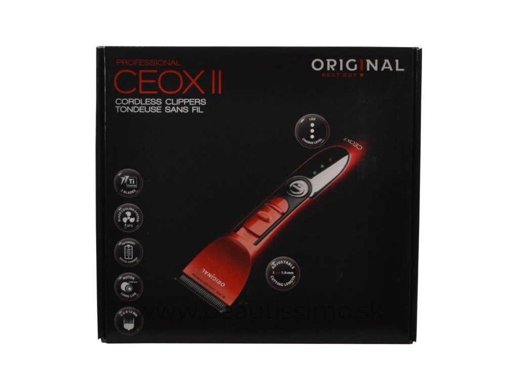 Profesionálny strojček na vlasy Original Best Buy Ceox II s elegantným dizajnom a skvelou ergonómiou. Tento akumulátorový strojček na vlasy je veľmi jednoduchý na ovládanie, môžete pracovať ako s káblom tak aj bez neho. Strojček má LED indikátor pre stav batérie.
