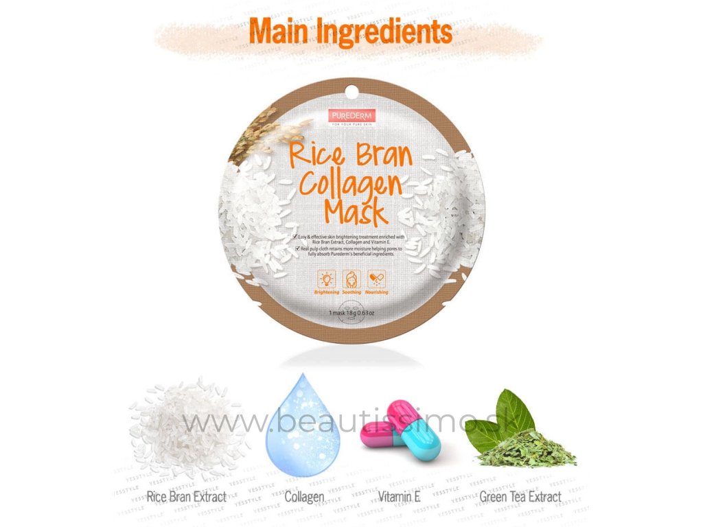 Táto maska je súčasťou kórejskej kozmetiky Purederm, ktorá prostredníctvom K-Beauty technológií a prírodných ingrediencií poskytuje pleti intenzívnu starostlivosť. Ryžové otruby a ďalšie aktívne látky zanechávajú pleť žiarivú, hydratovanú a rovnomerne tónovanú.