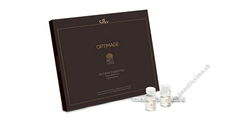 Silky Antiáge Essentiel - rekonštrukčné sérum 10x15ml obsahuje kyselinu hyalurónovú, colagén a 11 ovocných aminokyselín. Hydratuje, dodáva vlasom dôležitú elasticitu a pružnosť a stimuluje vlasové bunky k regenerácií.