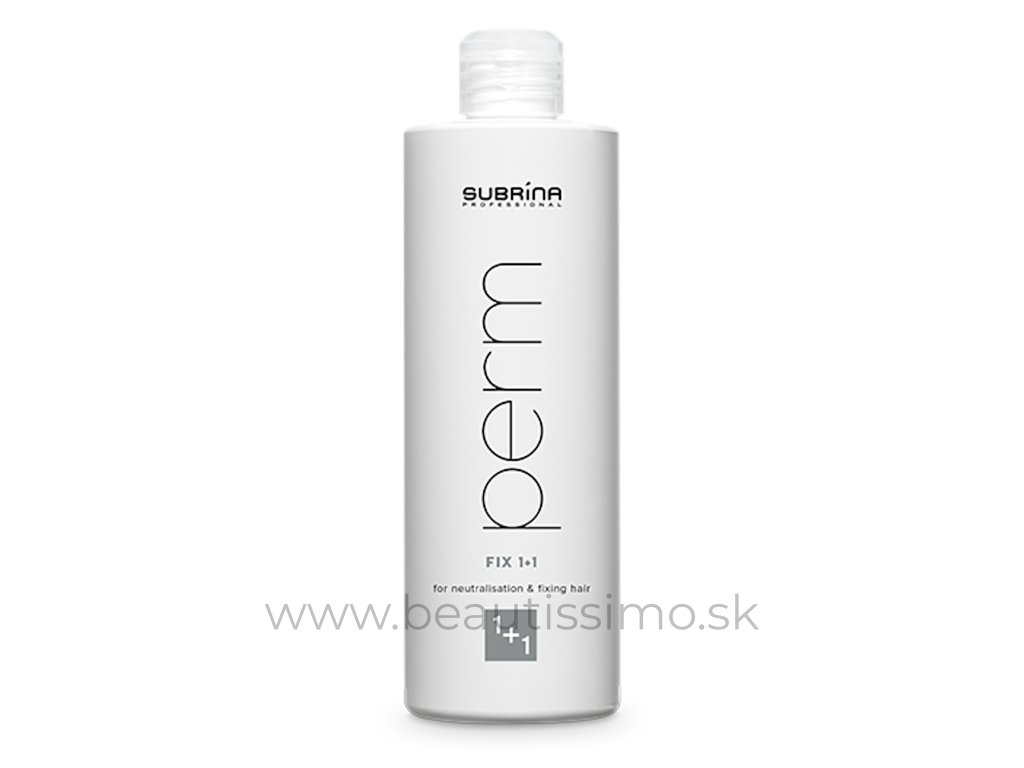 Koncentrát trvalej PERM FIX 1+1 je fixačný a neutralizačný produkt, ktorého použitie je nevyhnutným záverečným krokom každej trvalej procedúry. Vďaka kyslým vlastnostiam produktu neutralizuje zvyšky trvalej vody a obnovuje normálnu hodnotu pH vlasov. Obsahuje peroxidu vodíka.