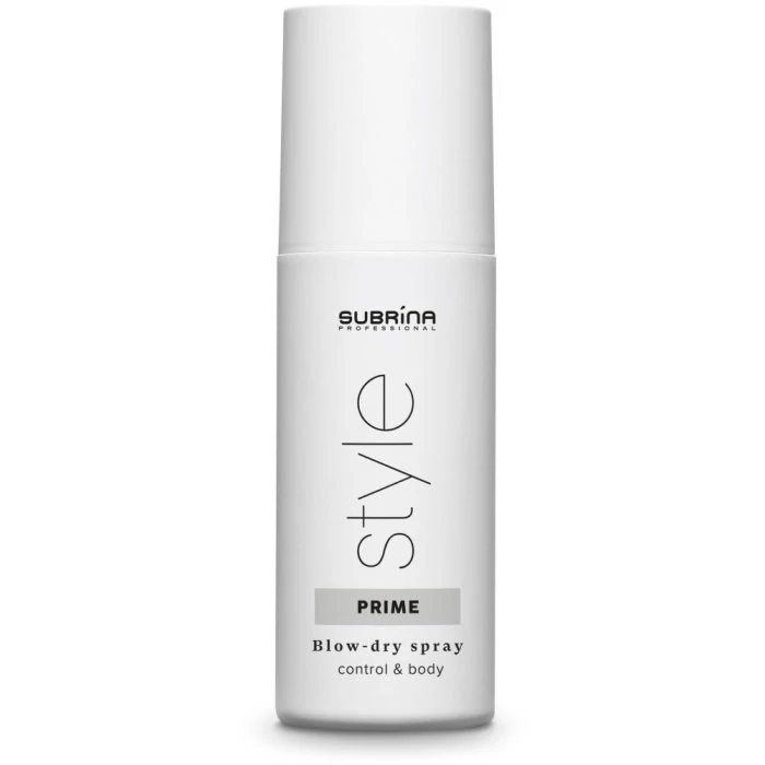 Stylingový sprej Subrina Professional Style Prime Blow-dry Spray dodáva vlasom silu a objem. |
