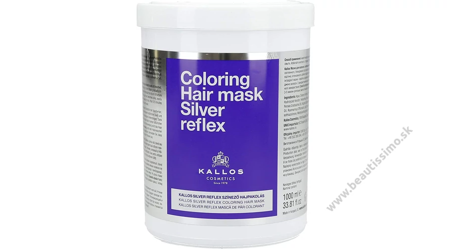 Kallos Silver Reflex tónujúca maska s keratínom neutralizuje nežiaduce žlté odtiene zosvetlených, blond a sivých vlasov a zanecháva ich s chladným strieborným tónom. Postupným používaním sa efekt tónovania zosilňuje, čím vlasy získavajú prirodzený lesk a svieži, studený odtieň.