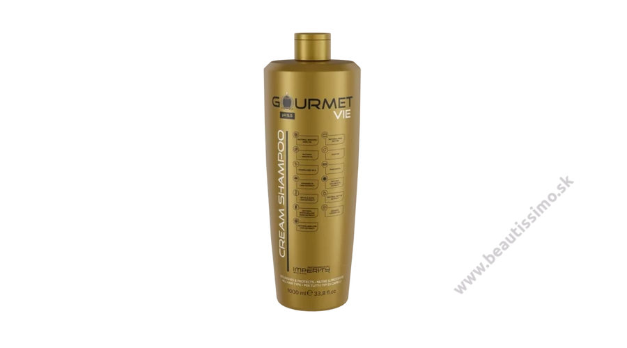 Gourmet Krémový Šampón pre náročných prináša luxusnú parfumovú vôňu podobnú La Vie est Belle a obsahuje komplex aktívnych zložiek, ktoré výživujú, hydratujú a zanechávajú vlasy lesklé a hodvábne.